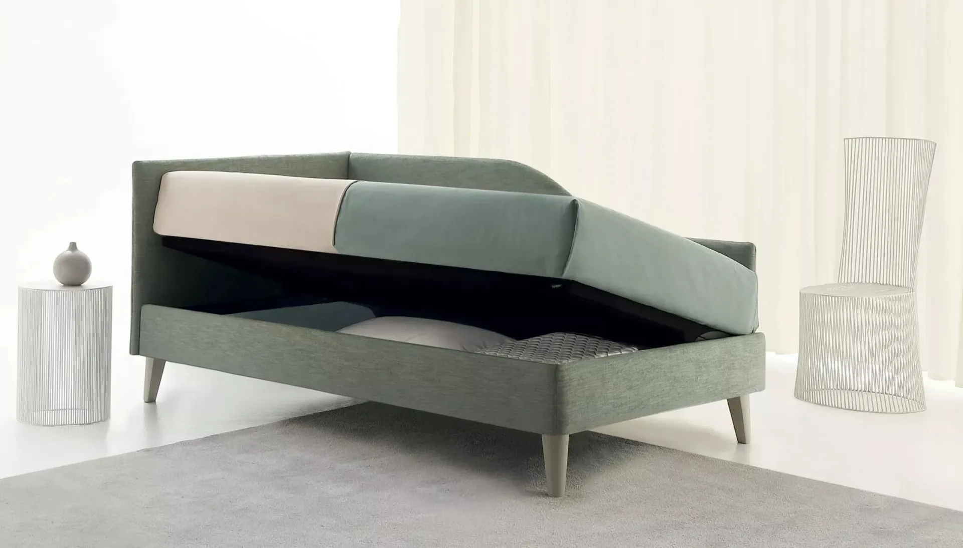 Una proposta che osserva le norme di sicurezza indispensabili per progettare lo spazio junior. La cameretta dei più piccoli include ogni pezzo di arredo per garantire un ambiente accogliente, in cui convivono i letti moderni come questo. Scopri di più sul modello in tessuto nell'immagine: contattaci per qualsiasi info compilando il form in basso.