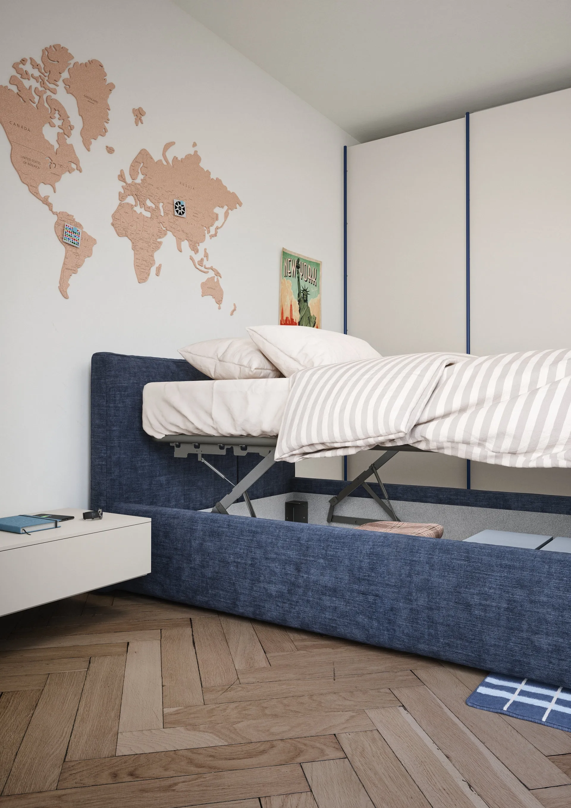 La cameretta dei più piccoli include ogni mobile per assicurare un locale ideale per i bambini, in cui collocheremo i letti moderni come questo. Una proposta che osserva le direttive di sicurezza necessarie per arredare il regno dei giovani. Scopri di più sul modello in tessuto nell'immagine: contattaci per qualsiasi info compilando il form in basso.